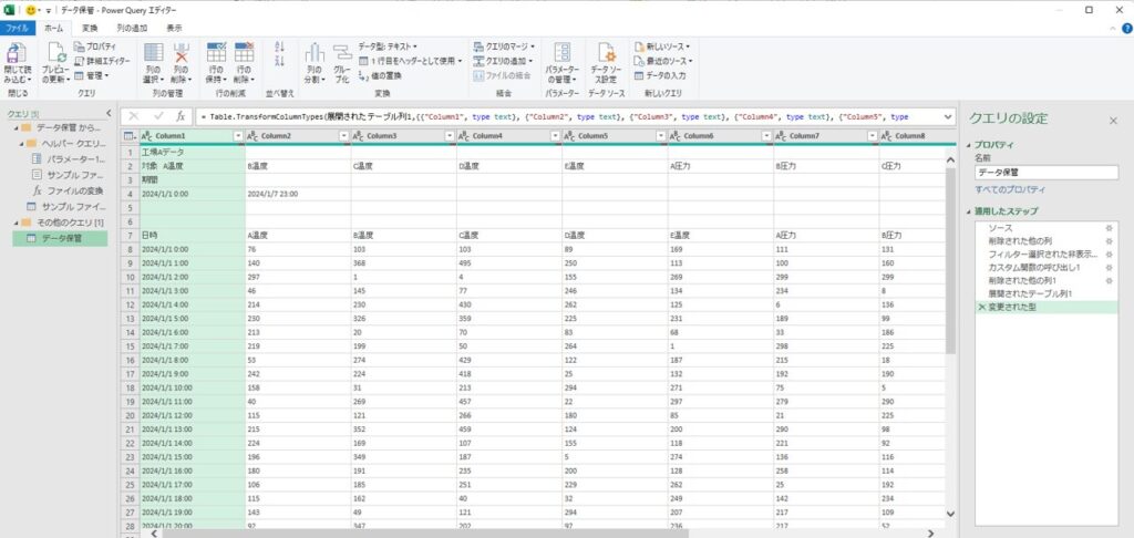 工場で使用してる機器からデータを出力したときはこういうパターンが多いですよね。